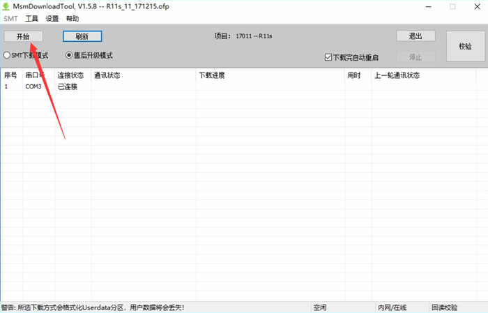 4. 点击“开始”进行刷机(刷完会自动重启)