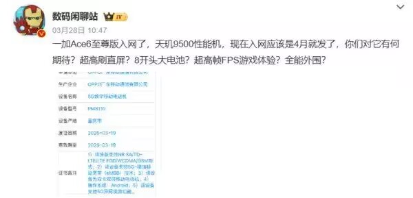 续航方面,一加Ace 6至尊版的一大卖点是其内置的8500mAh级别超大容量电池(部分传闻指出可能采用8000mAh-9000mAh的双电芯设计),这将使其续航能力在同类产品中极具竞争力。充电方面,该机预计将支持100W有线快充。另外,该机还有望支持3D超声波屏下指纹识别,并提供IP68/IP69K级别的防尘防水能力。