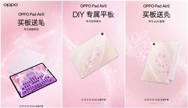 商品页面显示,OPPO Pad Air5 搭载天玑 7300 Ultra 处理器,配有 8MP 前摄 + 8MP 后摄,以及 4 扬声器。此外,购买 OPPO Pad Air5 平板,赠送保护壳、星星贴纸、官方手写笔。