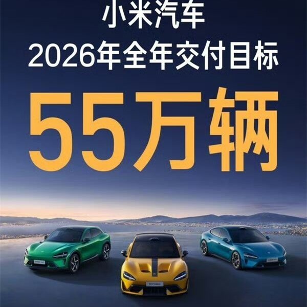 1月4日,@雷军 通过社交媒体发文回顾了上一年的表现,并透露了在1月3日晚的直播中公布的2026年全年交付目标:55万辆。