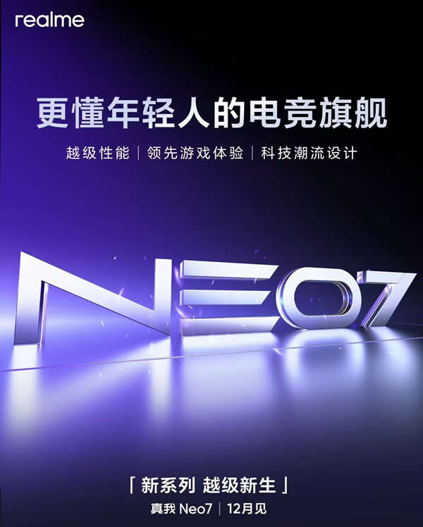 12月份的新机有点多,其中就有真我Neo7系列,是的你们没有看错,就是真我Neo7系列而不是realme GT Neo7系列.因为真我Neo系列独立了,不在依附GT了,首款产品真我Neo7,12月份发。