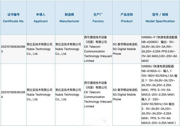 努比亚红魔游戏手机 6 Pro 通过国家质量认证,型号NX669J-P,支持最高 20V 6A的120W快充。也从侧面证实了之前66/65W的NX669J不是努比亚Z系列新机,而是 红魔6标准版。