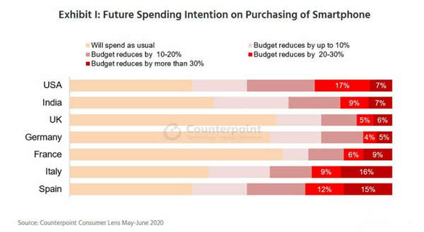 据Counterpoint Research最新报告显示,有三分之一的智能手机用户在购买下一部智能手机时会降低20%的预算。