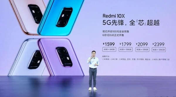 6月1日0点,Redmi 10X正式发售,起售价1599元(6GB+64GB)。小米集团中国区总裁、Redmi品牌总经理卢伟冰公布了Redmi 10X首销战报,首卖5分钟全平台销售额突破1亿元。