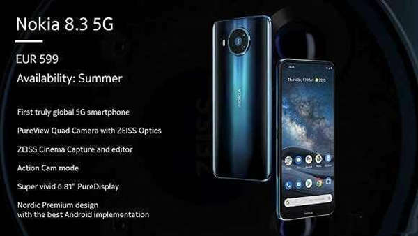诺基亚 8.3 5G搭载高通骁龙765G处理器,6.8英寸OLED屏幕,后置64MP+12MP超广角+2MP景深+2MP微距四摄,24MP前置摄像头,4500mAh 电池,支持18W快充,保留3.5mm耳机孔,运行Android 10