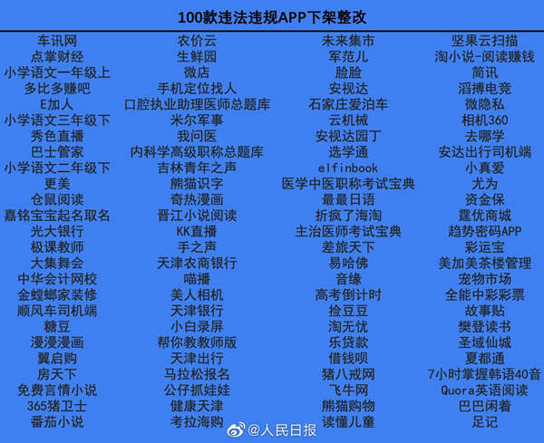 据国家网络安全通报中心的通报,11 月以来,全国公安机关网安部门集中查处整改100款违法违规APP及其运营的互联网企业。