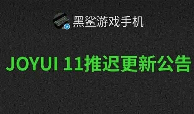 黑鲨游戏手机官方微博宣布,黑鲨手机JOYUI11因稳定性暂时不能满足用户需求,推迟更新,2019年12月30进行内测升级,2020年1月20开始推送公测