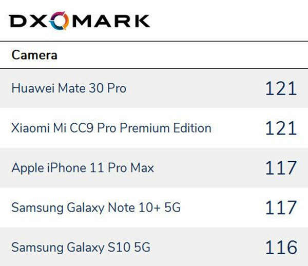 DXOMark也对2019年的最佳智能手机相机名单做出了公布:综合最佳:华为Mate30 Pro/小米CC9 Pro尊享版,最佳视频:iPhone 11 Pro Max,最佳夜景:华为Mate30 Pro,最佳变焦,小米CC9 Pro尊享版,最佳广角:三星Galaxy Note10+ 5G
