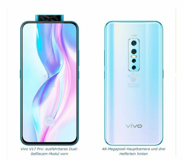 根据目前曝光的渲染图和海报来看,V17 Pro除了继续采用升降式前摄的全面屏之外,前摄模组也将升级为双摄,为1600万+200万组合,且配备后置竖排四摄。后置为4800万+1300万+800万+200万像素组合,加起来6个摄像头。