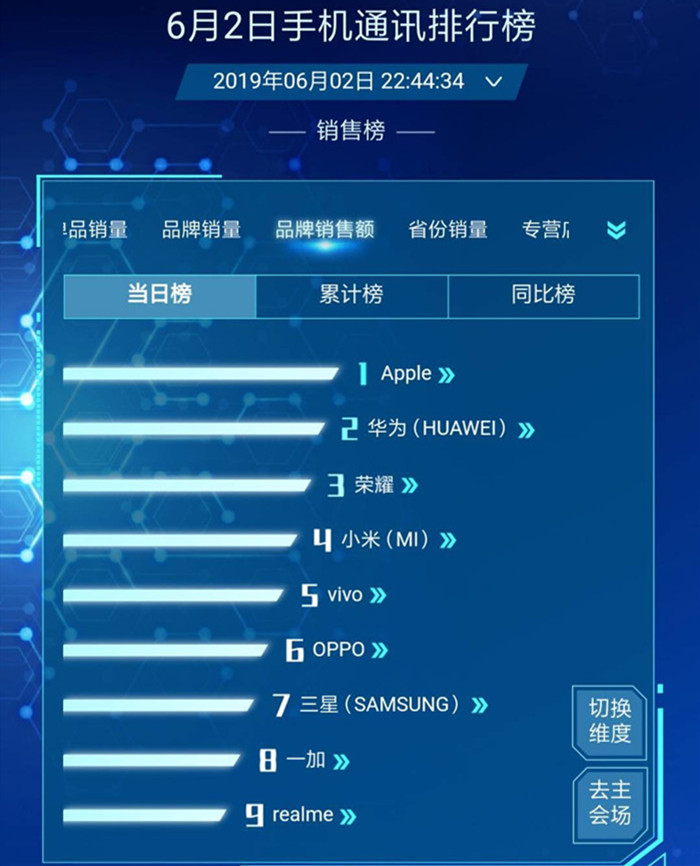 6月2日为618活动的第二天,京东手机销量颠覆昨日的情况