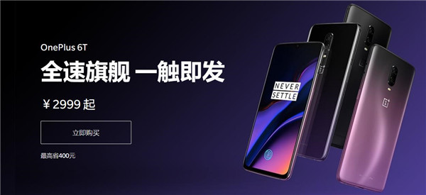 近日小编访问一加手机官网,无意间发现了一加6T已降级400,墨岩黑直降 400 元 6 + 128GB、8 + 128GB 及 8 + 256GB 版本分别售 2999元、3199元和3599 元 电光紫价格还未降级