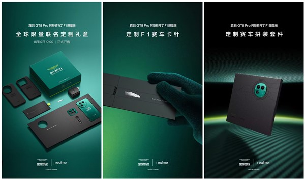 不知道大家有没有注意到,之前在真我GT8 Pro发布会的最后,那段F1赛车的动画其实暗藏玄机留下了这次的彩蛋-真我再次携手阿斯顿·马丁沙特阿美F1车队,带来真我GT8Pro阿斯顿马丁F1限量版。