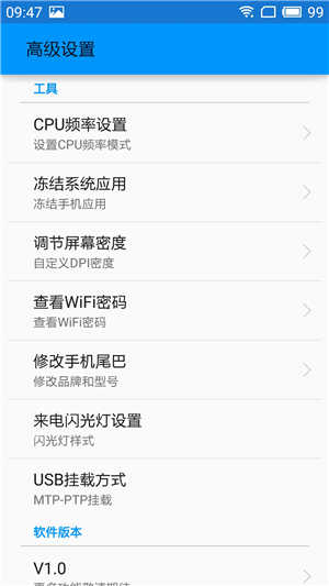 ★★注意★★ .建议刷机前备份好个人资料 .刷机过程中请勿中途断开,保持手机电量充足 .第一次启动可能会比较慢,请耐心等待 ★★ROM介绍★★ •深度精简厂商出厂内置及无用软件 •屏蔽部分系统广告 •深度优化系统残留沉淀 •完美使用SuperSU授权管理 •增强系统级别高级电源菜单 ★★增强专属定制高级设置 ★★CPU频率设置,可设置CPU模式大小 ★★冻结系统应用,可冻结不需要的apk ★★屏幕DPI设置,可调节显示大小 ★★WIFIMM查看,随时查看连接密码 ★★修改品牌和尾巴,高级用户需求 ★★来电闪光灯,iPhone来电效果 ★★MTP-PTP挂载方式默认入口 •省电逻辑分级优化,更久待机 •适度精简,保持特色,大内存 优化耗电管理,提升了电池续航能力 改善滑动平滑效果、触控敏感度、滑动速度 WIFI及GPS均作了适度优化全面有效提高兼容稳定性 优化流畅度提升,达到长期使用的效果 更多功能,优化可自行刷入体验