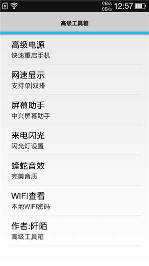 基于官方包深度优化安全稳定定制。 增加了完整的ROOT权限 添加状态栏网速,支持单双排网速显示 添加本地WiFi密码查看 添加高级电源管理快速重启手机 添加屏幕助手功能,桌面单手操作,代替屏幕底部三按键 添加来电闪关灯,电话短信通知,闪光提示 添加蝰蛇音效,完美音质,顶级音质驱动 添加busybox指令集 精简部分原厂垃圾 增强WIFI信号强度 精简rom体积 改善触摸响应,提高手机流畅度 加速内部存储读写速度 加入boot省电技术,玩机更省电 轻度精简,确保办公软件正常使用 精简无用文件,最大限度释放内存 优化待机最高频率,降低待机功耗 更多功能请刷机体验