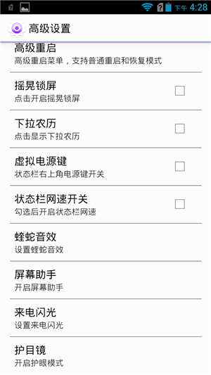 此包是卡刷包,稳定性不错; 基于官方定制而成已 屏蔽官方广告推送服务 集成SuperSU权限 深度优化系统 添加高级设置项: 高级重启菜单 摇晃锁屏,轻巧的锁屏方式 下拉农历,勾选后在下拉时间处显示农历 虚拟电源键,右上角替代电源键 状态栏网速开关 蝰蛇音效 ,很不错的一款音效,可自行设置音质和效果形式,需更新驱动,一般1分钟左右 屏幕助手 (移植中兴屏幕助手,长按弹出更多选项) 来电闪光,炫酷功能 护目镜 (夜间玩手机和喜欢阅读的可以保护视力) 工程模式 使用原固件配套bootimg并优化修改,省电流畅 支持init.d脚本开机自启 保留了官方包的特性, 精简了定制及基本用不着apk和不必要的组件 改善滑动平滑效果、触控敏感度、滑动速度 桌面图标排序重新编辑,整洁美观 对ROM进行zipling优化,占用更少的内存,更加流畅 优化流畅度提升,达到长期使用的效果 更多优化可自行体验