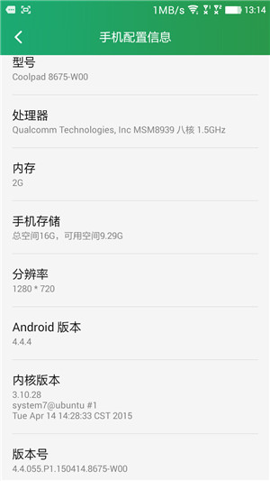 Android系统版本:Android 4.4