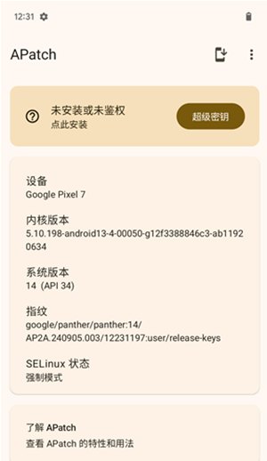 APatch也是一款全新的内核root工具,他和KernelSU基本功能非常接近,最大的区别是兼容旧版机型, 已知理论上支持内核版本 3.18 – 6.1全部设备,具体机型需自行测试,都作用于boot分区, 默认对应用软件层隐藏root权限,轻松解决第三方银行/安全等软件检测root后无法启动等问题, 仅支持内核维补boot分区生成root权限,没有LKM模式,对于旧设备兼容较高,无需自编译内核实现, 下面是ROM乐园收集的APatch内核root管理器,请配合root权限后使用 APatch内核管理器APatch-10533特色功能 1、c-10533更新发布,完美兼容3.1-6.1相关内核设备 2、兼容更多设备,并且运行稳定,真正内核级别root权限 3、完整的授权ROOT权限,可对任何APP进行黑名单授权 4、深层次躲避ROOT检测,可实现银行/安全/支付等APP运行 5、支持不同品牌手机,如小米三星联想一加华为等可解锁BL设备 6、由ROM乐园官方发布,感谢大家对ROM乐园的支持,完全免费下载 7、因为机型或者BL解锁等影响,如自行不会操作的,可联系ROM乐园官方 8、APatch-10533内核图片仅供参考,不同版本存在差异,以实际资料为主 9、提供完整的APK直接安装版,仅支持GKI机型+自编译内核 10、推荐稳定兼容安卓版本:安卓10-安卓16内核5.1-6.6设备 更新日志: Compat termux's su by @bmax121 in #264 Full Changelog: 10529...10533 已经有root的用户,自行下载APatch-10533版本的安装包,直接安装到你的手机上,选择直接安装(推荐)按钮升级到新版 未ROOT的用户,请维补boot分区后,生成文件,使用ROM乐园ADB工具箱刷入到手机即可获取root权限,参照下面命令 fastboot flash boot APatch-10533.img & fastboot reboot ROM乐园ADB工具箱下载:http://www.romleyuan.com/lec/read?id=1107
