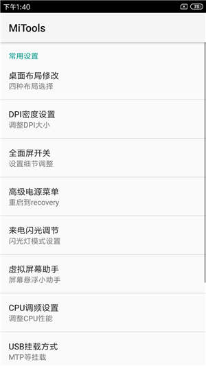 解锁之后刷入对应的第三方recovery,请勿用官方recovery卡刷 首次刷机,建议twrp里格式化data一次,以免出现开机卡米 ROM均真机实测,请放心刷入,首次刷机格式化data1次 默认黑域支持,遇到软件不能后台,请设置黑域屏蔽名单 默认不激活Xposed,需要的刷入beta2:https://pan.baidu.com/s/1p7DHAAu1TU9z9ztJlAEfzg 基于官方MIUI10开发9.3.29制作 为全机型添加全面屏开关切换 自定义开启和关闭,并修复错位 Xposed需要激活,请务必刷入Beta2 主题全新改版,升级最新,更多支持 破解下载管理为无限会员,高速下载 深度优化,值得长期使用高质量ROM 新增黑域补丁版,更好管理唤醒 完美保留系统完整性,优化待机 桌面进行重新排布,刷完十分清爽 融合之前版本全部特色,完美 MIUI-自带APPS升级到官方最新 适合追求稳定,不经常刷机的用户 破解MIUI主题,无需登录下载 破解MIUI限制,卸载软件不卡开机 破解系统默认加密,解密system 破解系统签名,更好安装第三方软件 加入黑域补丁版,更好管理唤醒 加入蝰蛇顶级音效,开机即用 加入授权为SuperSU授权,纯净 加入系统级别高级电源管理 加入桌面天气农历双显示模式 加入Busybox指令集多种支持 加入自编译MiuiTools高级设置 支持桌面布局自切换功能 支持4X5,4X6,5x5,5X6切换 支持状态栏搜索框自定义开关 支持DPI数值自定义大小 首次使用,需给予Miuitools Root权限 请勿将数值设置的过大或过小 支持高级电源菜单管理 支持快速开机重启功能 支持一键重启到recovery 加入中兴屏幕助手 Lollipop风格版本 支持开启和关闭,长按高级电源菜单 加入全新CPU调频管理,多设置模式 加入USB挂载功能 挂载MTP等模式 加入来电闪关灯,默认开启 优化待机能力,更加持久给力 优化内存中用,极致超大RAM 优化手机射频,降低手机电量耗损 优化流畅性,全网最佳定制系统